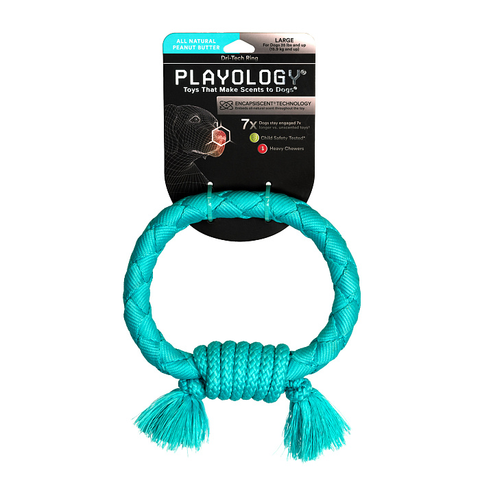 Playology ® разрабатывает ароматизированные игрушки, изготовленные из безопасных для собак материалов, которые занимают собаку в 7 раз дольше, чем игрушка без запаха. В основу каждой игрушки заложена технология «вживленного аромата» (ENCAPSISCENT®), ароматизированные частицы по запатентованной формуле буквально внедрены на микроскопическом уровне в прочный материал игрушек, будь то резина или текстиль, что делает их абсолютно уникальными и долго сохраняющими аромат. Жевательное кольцо-канат DRI-TECH RING изготовлен по технологии формованного волокна, предотвращающей разрыв веревки на длинные куски, которые могут быть опасны для вашего питомца при проглатывании. Подобно спортивной одежде, игрушки-канаты DRI-TECH RING отводят слюну, чтобы игра в перетяжку оставалась сухой, а сама игрушка — без запаха. Подходит для умеренно грызущих взрослых собак всех возрастов (от 15.9 кг и более). Обратите внимание: нет неразрушимых игрушек, любую игрушку следует регулярно осматривать и забирать, если игрушка повреждена, чтобы исключить травмирование питомца. Убедитесь, что выбранная вами игрушка подходит по размеру и темпераменту вашей собаки. Не подлежит обязательной сертификации.